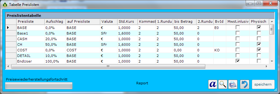 Bevor Sie Kunden und Lieferanten eingeben, benötigen Sie die Preislistentabelle.