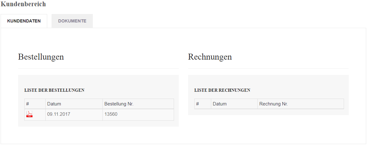 Sollte der Shop-Betreiber in der Zwischenzeit auch die Rechnung ausgestellt und in PDF Datei gedruckt haben, so wird diese unter der Liste der Rechnungen angezeigt.