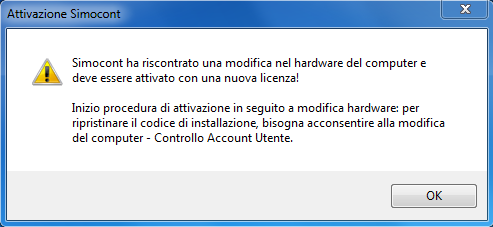 e il seguente messaggio nel Modulo di Licenza Simosoft