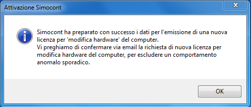 Se non si tratta di un comportamento anomalo sporadico o di una situazione transitoria, vi preghiamo di confermare via email la richiesta di nuova licenza per 'modifica hardware'.