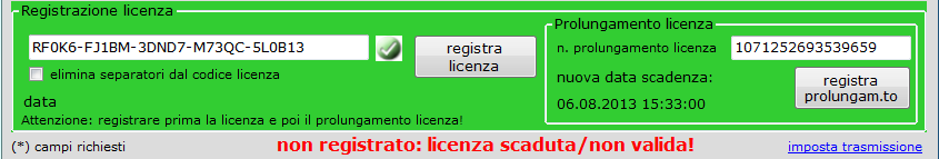 Alla fine verrį visualizzato il Modulo di Licenza Simosoft con il messaggio "Licenza scaduta/non valida".