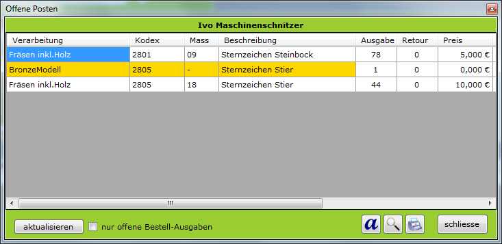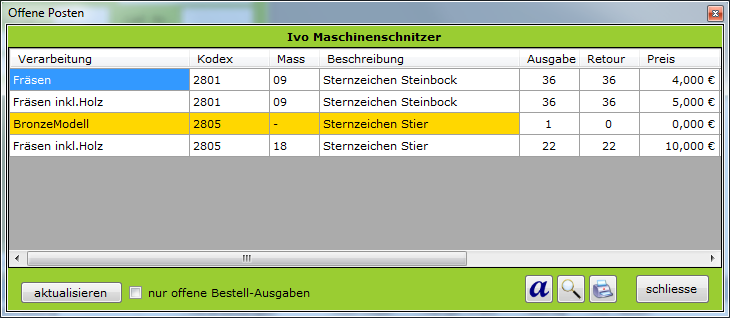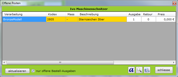 Alternativ können wir uns nur die offene Bestell-Ausgaben anzeigen lassen