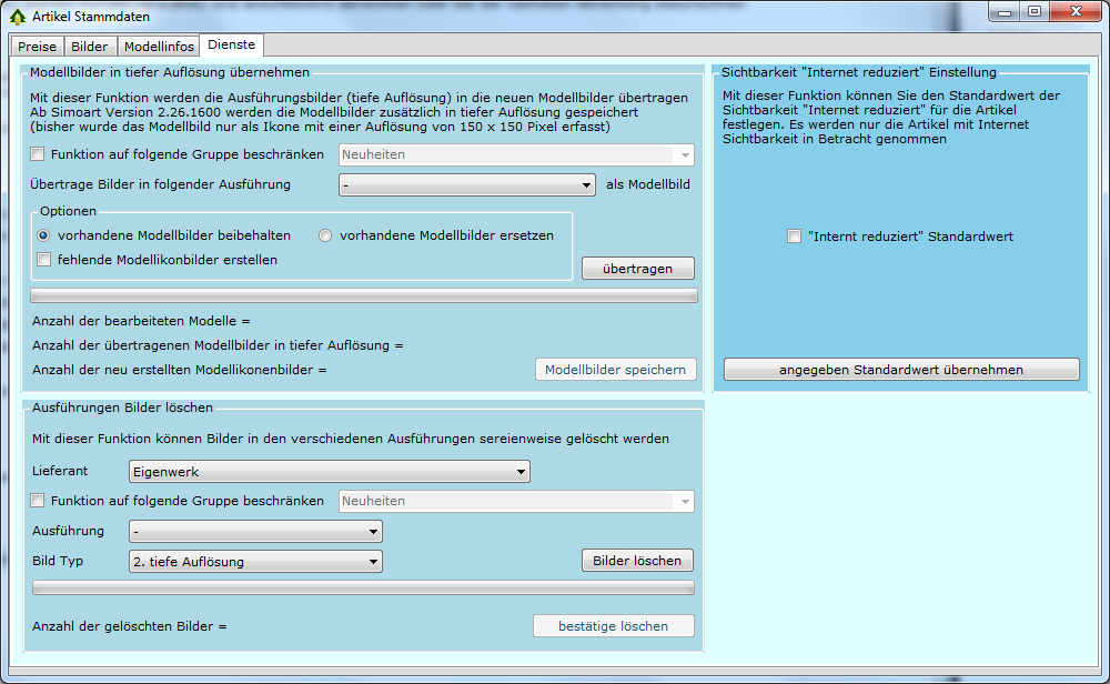 Neue Funktionen betreffend die Bilder (Artikel -> Dienste) - für den eigenen Webshop und den Datenexport im XML Format