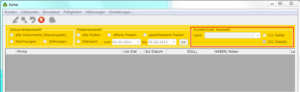 Zudem haben Sie nun die Wahl zwischen zwei Postenlisten mit der Option "alle Kunden" oder "alle Lieferanten"