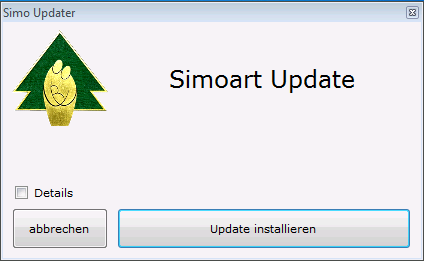 Startfenster des Update Systems mit Möglichkeit Details einzublenden.