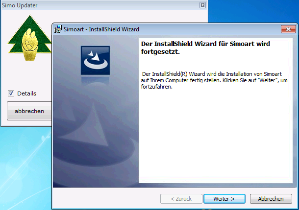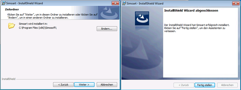 Es kann vorkommen, dass der zweite Schritt einen Neustart von Simoart verlangt. Normalerweise wird erster und zweiter Schritt ohne Unterbrechung ausgeführt.