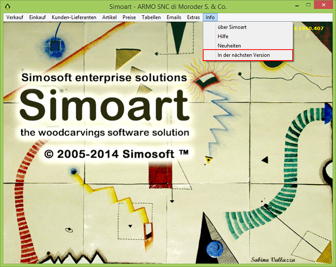 Der Menupunkt "Neuheiten" und "In der nächsten Version" im Simoart Hauptmenu ...