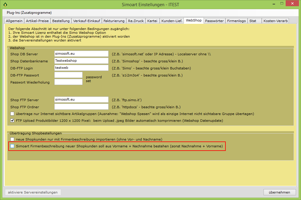 Im Bild sehen Sie die neu hinzugefügte Option in den Einstellungen im Reiter WebShop.