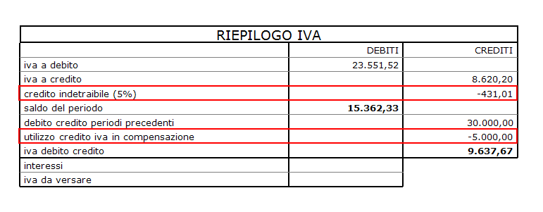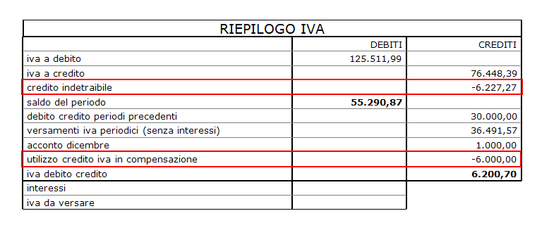 In seguito all'introduzione del credito iva indetraibile e degli importi compensati, é cambiato anche il riepilogo delle liquidazioni periodiche e annuale. Di seguito sono evidenziate le aggiunte: