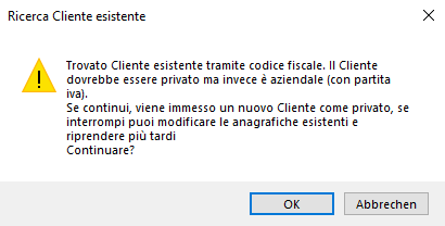 Qui sta all'operatore decidere se creare una nuova voce Clienti, oppure controllare e casomai modificare una delle voci esistenti del cliente.